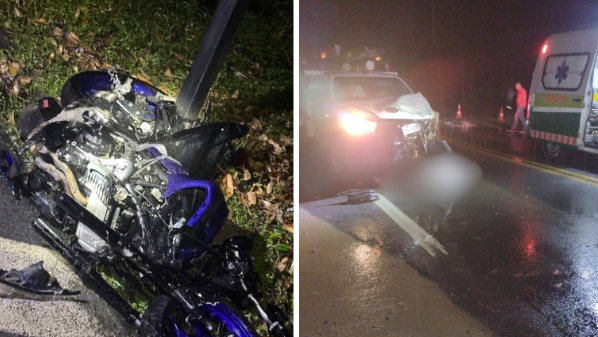 Colisão de moto com carro ocorreu na noite deste domingo (4), no km 128. PRF informou que duas pesso...
