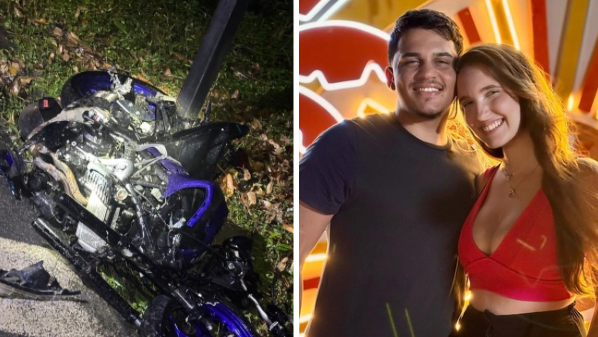 A moto onde estava as vítimas, Matheus Wagner Durte, de 22 anos, e Maria Yasmin Cravo (Crédito: Inst...