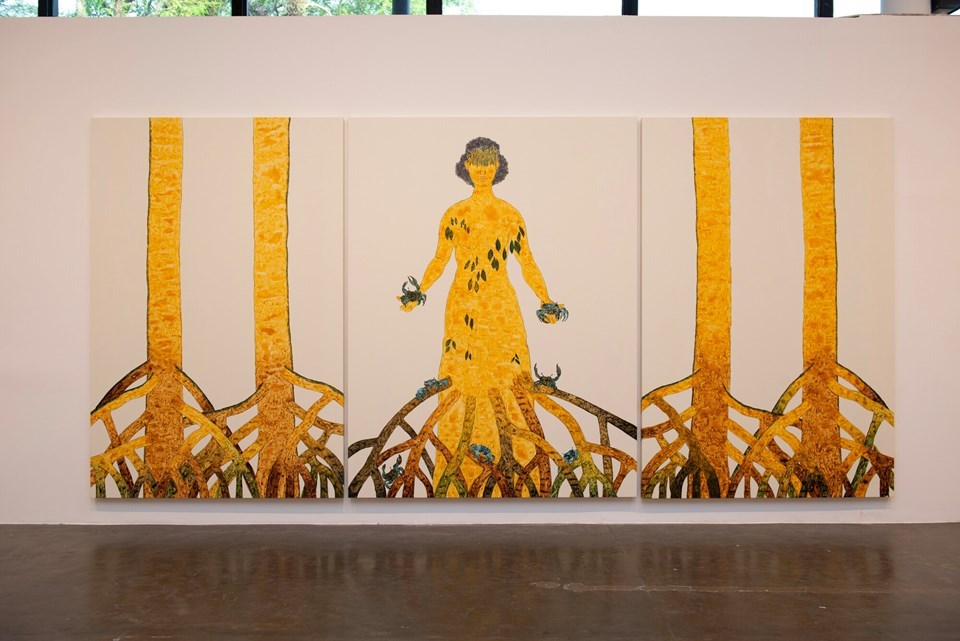 A instalação pretende provocar uma reflexão sobre a construção do mundo que habitamos e a atual cri...