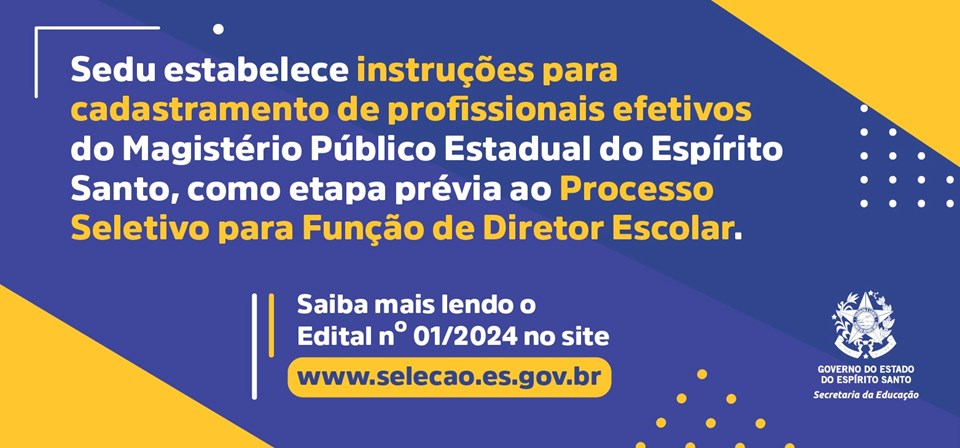 As inscrições deverão ser realizadas exclusivamente por meio do site www.selecao.es.gov.br...