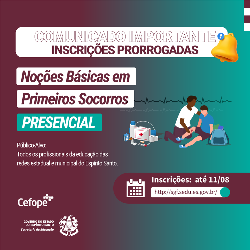 As inscrições podem ser feitas pelo link do Sistema Gestão de Formação (SGF): https://sgf.sedu.es.go...