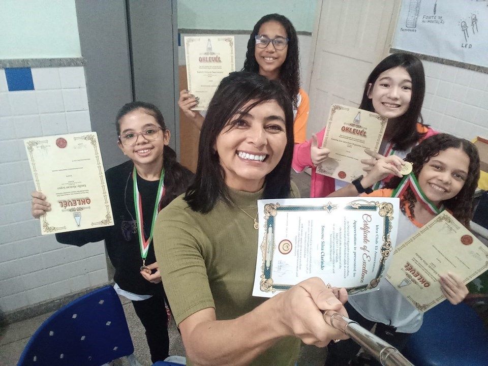 Professora Simone Clarindo com as alunas que fazem parte do Projeto EcoArte...