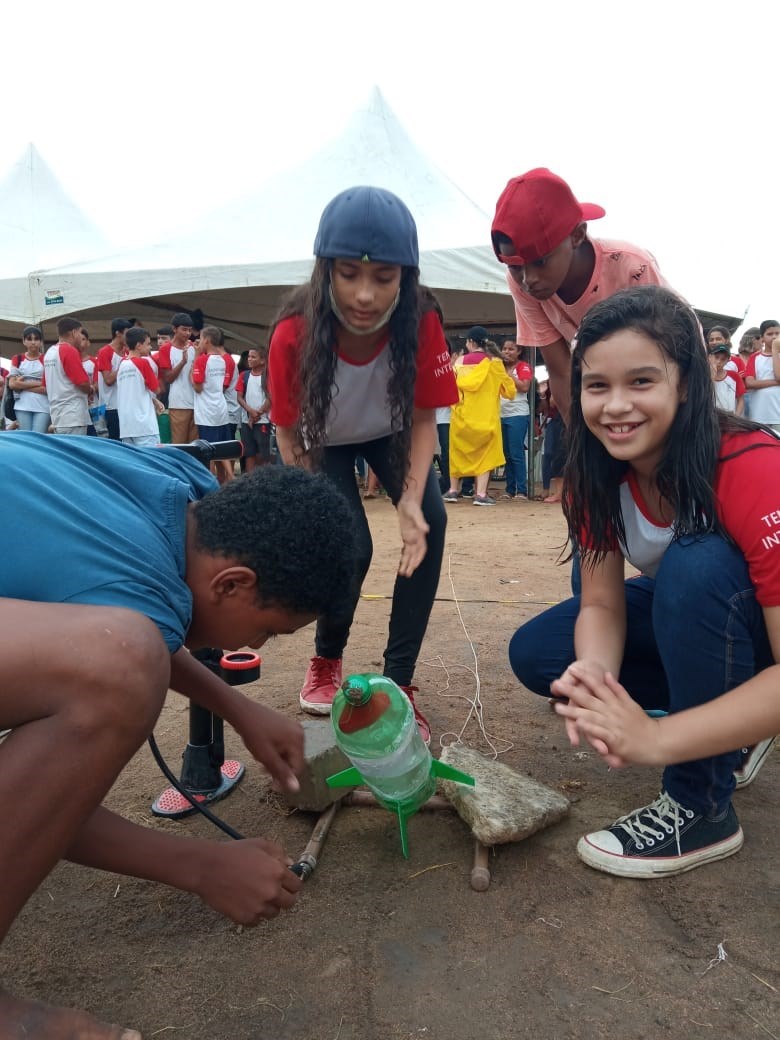 Os foguetes foram confeccionados com garrafas PET e o combustível para o lançamento foi uma mistura ...