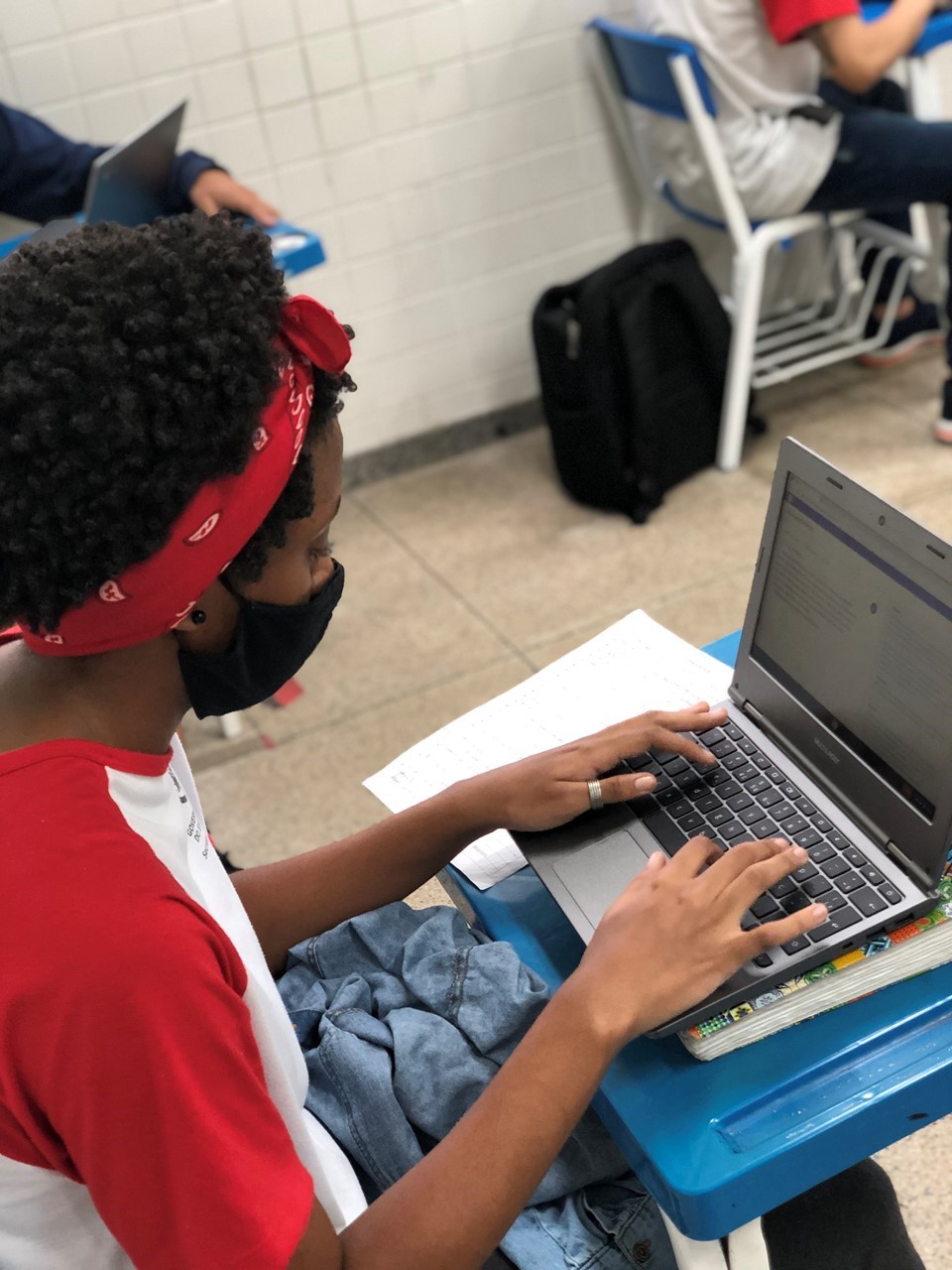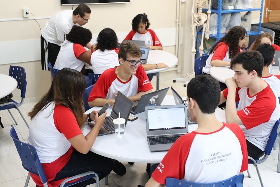Durante as aulas de Língua Portuguesa e Redação, os alunos utilizam os chromebooks e produzem, diret...