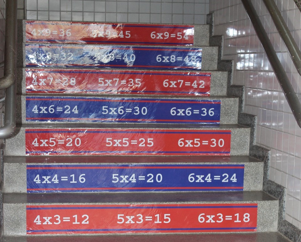 Foram criadas as escadas da multiplicação para estimular e motivar o aluno a aprender a tabuada de m...