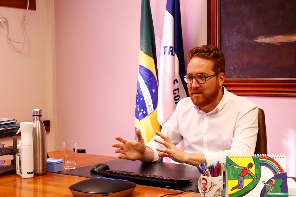 O secretário Vitor de Angelo discorreu sobre o regime de colaboração...