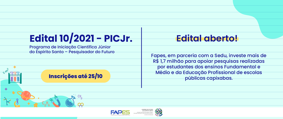 O Edital Fapes/Sedu nº 10/2021 destinará R$ 1.725 milhão para apoiar projetos a serem desenvolvidos ...