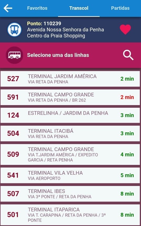 Após selecionar uma das opções, o app mostra ainda em quais vias é possível fazer essa conexão...