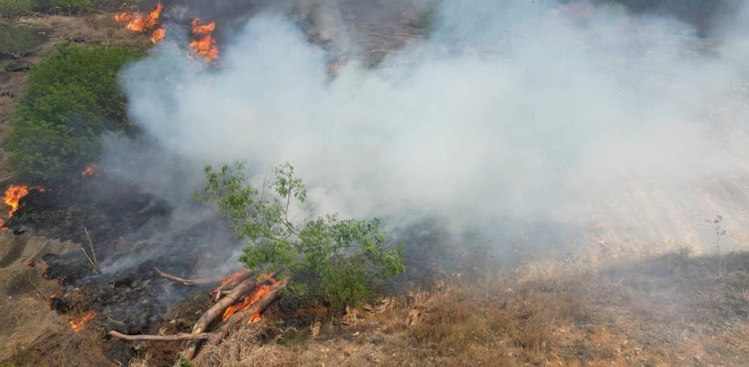 De acordo com a equipe da Defesa Civil prefeitura, o incêndio recomeçou após alguns troncos de árvor...