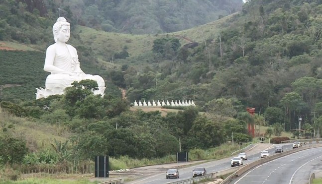 Estátua fica na entrada do Mosteiro Zen Budista e levou mais de um ano para ficar pronta. São 350 to...