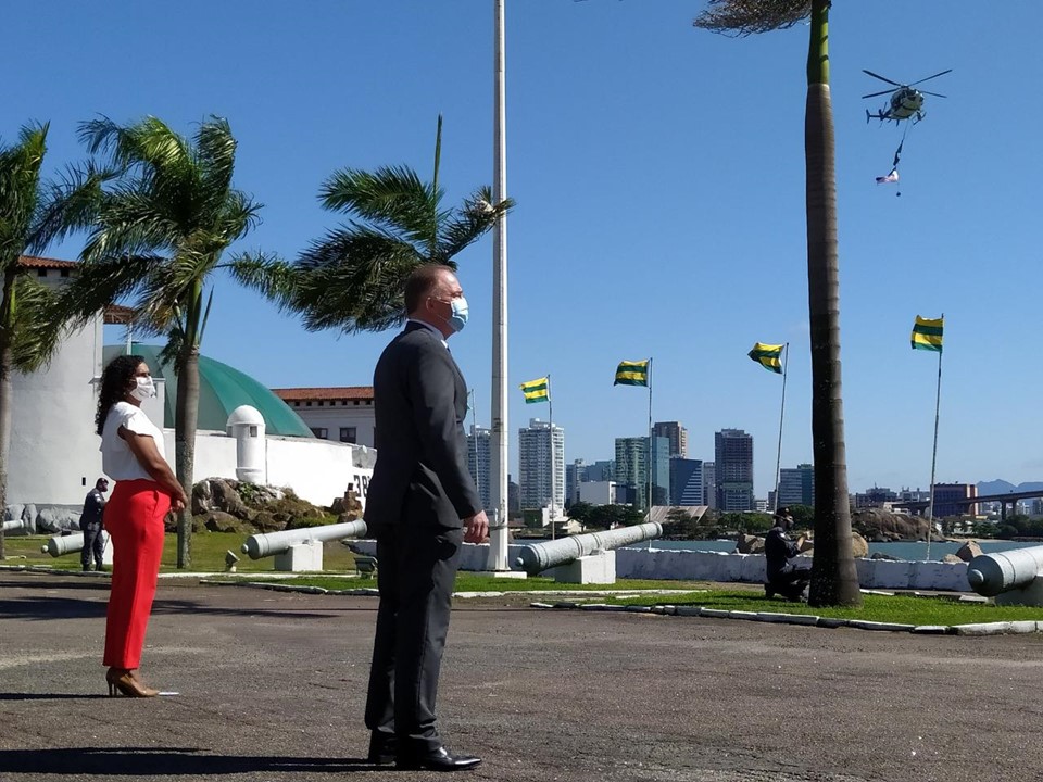 Durante a solenidade, foi feito um minuto de silêncio em homenagem às vítimas da Covid-19...