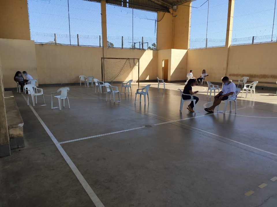 Nas portarias e ambientes de acesso das unidades socioeducativas foram instaladas barreiras sanitári...