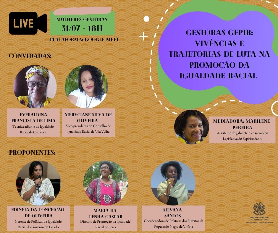 O evento “Gestoras Gepir: Vivências e Trajetórias de Luta na Promoção da Igualdade Racial” vai ocor...
