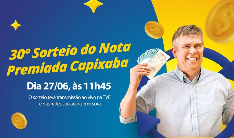 O sorteio do mês de junho acontecerá às 11h45, com transmissão ao vivo na TVE, na Rádio Espírito Sa...