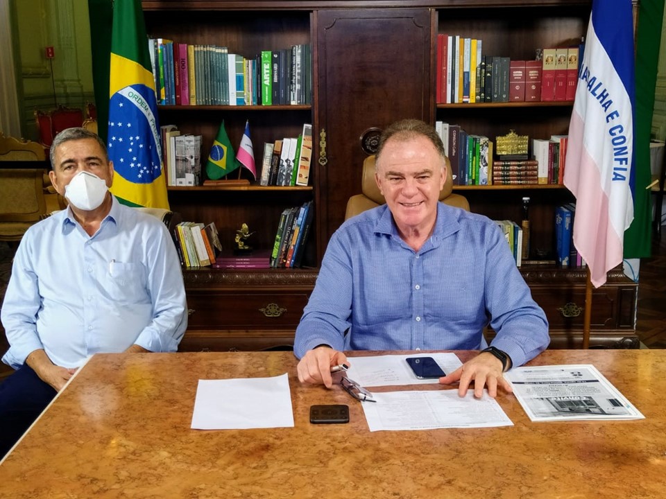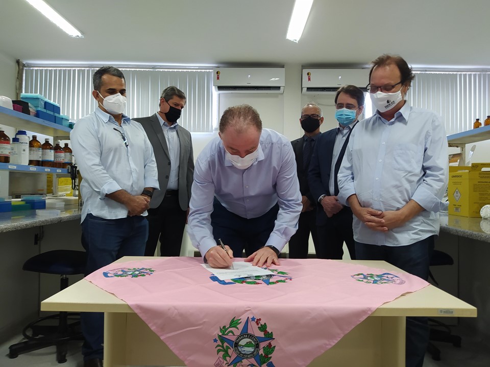 Durante a solenidade virtual, o governador Renato Casagrande e o secretário de Estado da Saúde, Nési...