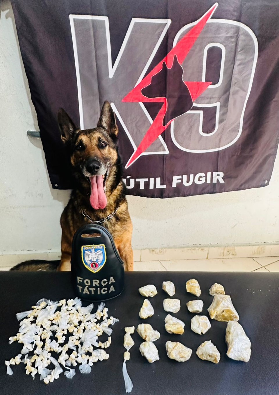 A equipe de Força Tática juntamente com o K9 realizou abordagem a um indivíduo suspeito e com empreg...