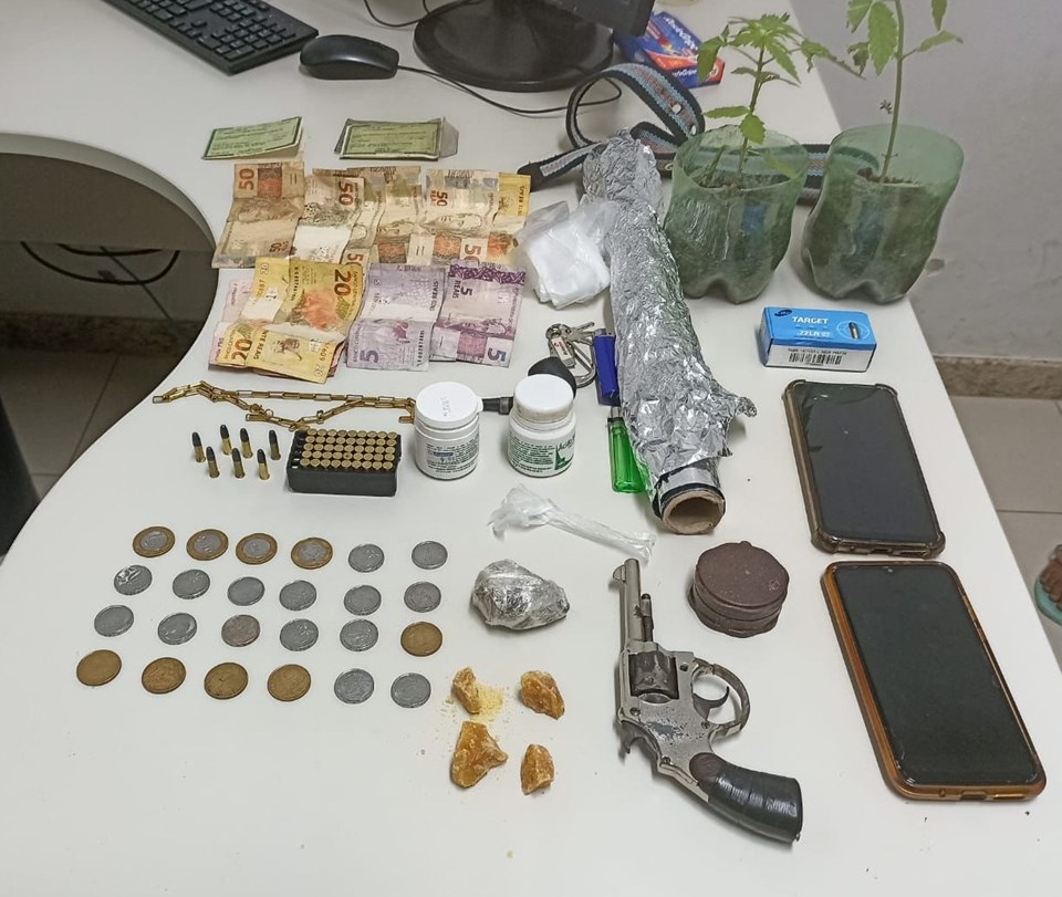 Durante a abordagem, foi encontrado na cintura do homem um revólver calibre 22 com sete munições...