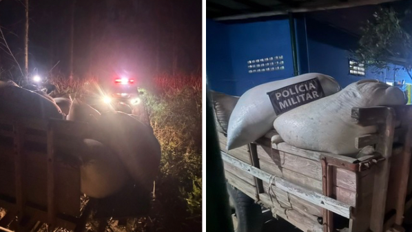 PM recuperou metade da carga roubada, além do trator usado no crime ocorrido na madrugada deste domi...